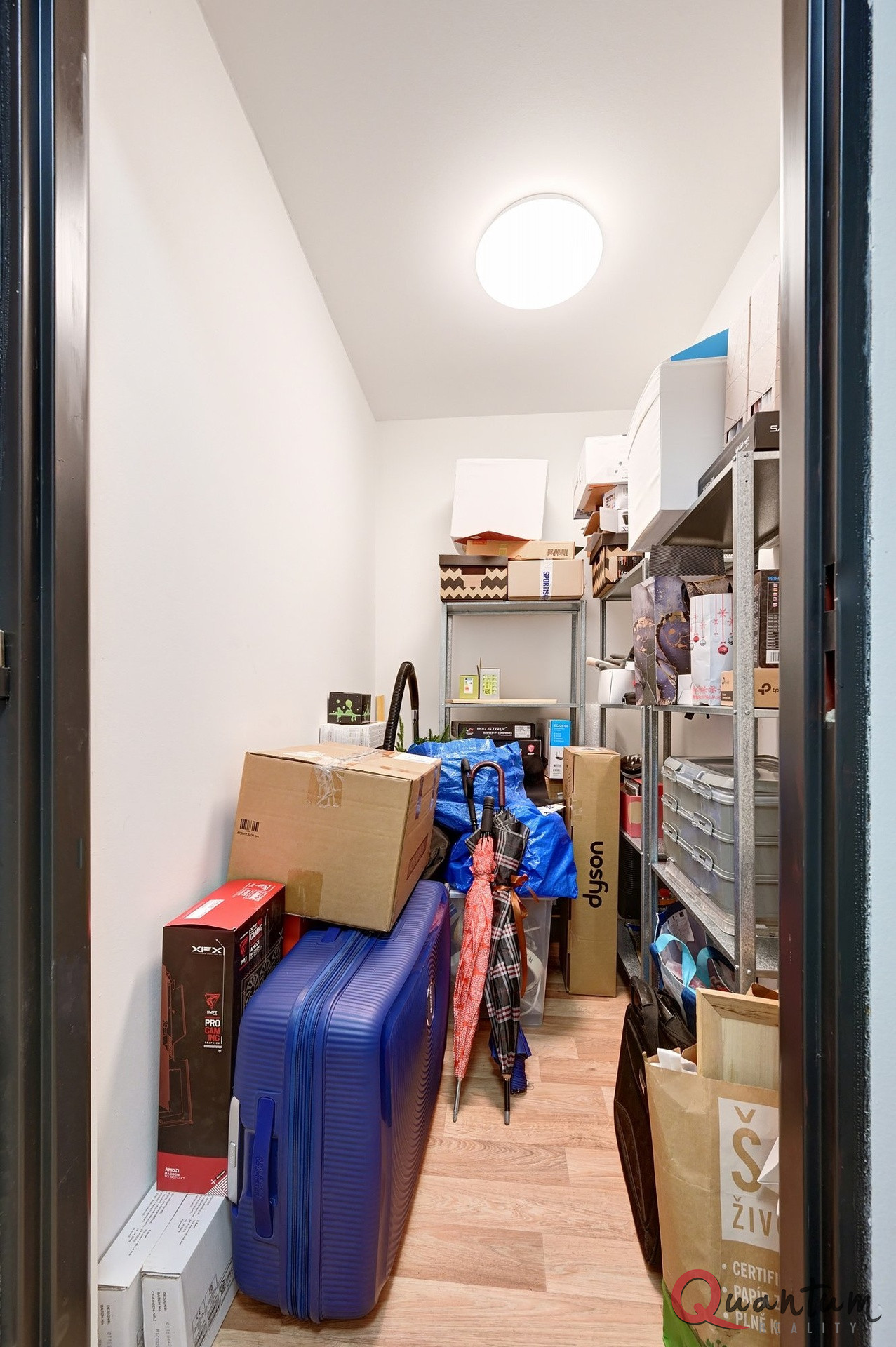 Byt je velmi dobře a prakticky řešený, dominantou je hlavní obytný prostor o velikosti 28 m² s kompletně vybaveným kuchyňským koutem a vstupem na lodžii o velikosti 3,7 m². Nadstandardní je technické řešení tří na sobě nezávislých rozvodů klimatizace v jednotlivých místnostech bytu. Samostatné pokoje mají shodnou velikost 13,5 m². Byt má také praktický sklad, chcete-li komoru přímo u vstupních, bezpečnostních dveří a dalo by se zřejmě uvažovat o propojení této komory přímo s bytem a tím získat velkorysou předsíň.